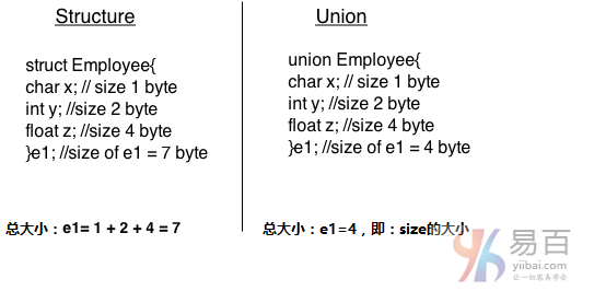 union關(guān)鍵字,其它均與結(jié)構(gòu)體一樣。