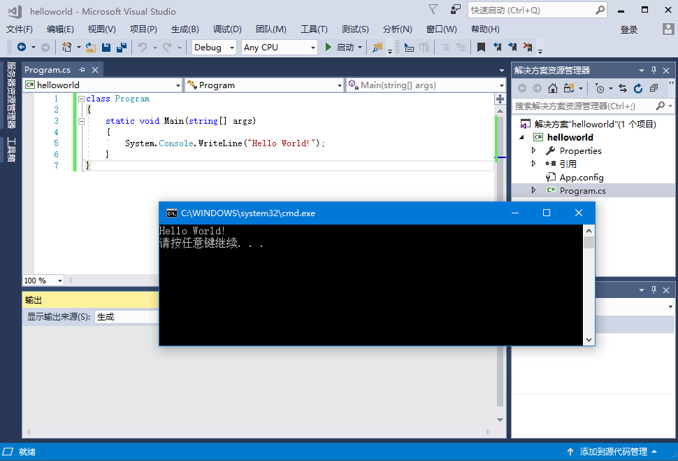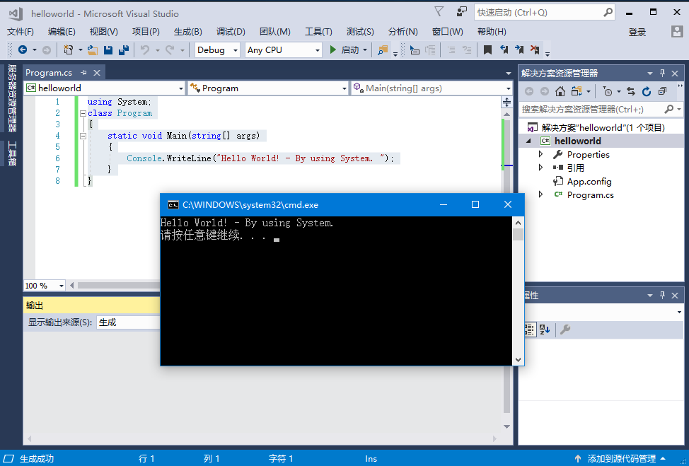 System.Console.WriteLine("Hello World!");