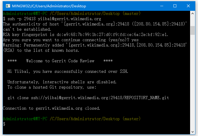 在上面的圖片中,可以看到yiibai是創(chuàng)建Gerrit帳戶時使用的實例名稱,Yiibai是您的Gerrit帳戶的用戶名。
