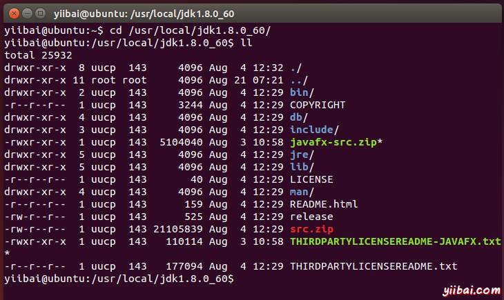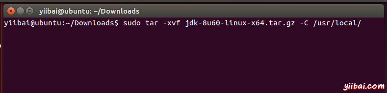 yiibai@ubuntu:~$ sudo tar -xvf jdk-8u60-linux-64.tar.gz -C /usr/local