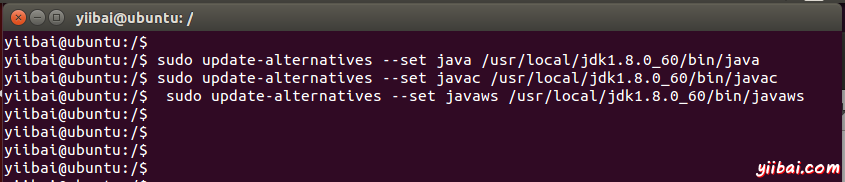 yiibai@ubuntu:~$ sudo update-alternatives --set java /usr/local/jdk1.8.0_60/bin/java