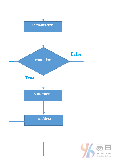 for(initialization;condition;incr/decr){