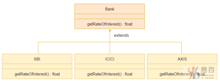 考慮一種情況,Bank類是一個提供獲得利率的方法的類。 但是,利率可能因銀行而異。 例如,SBI,ICICI和AXIS銀行分別提供8.4%,7.3%和9.7%的利率。