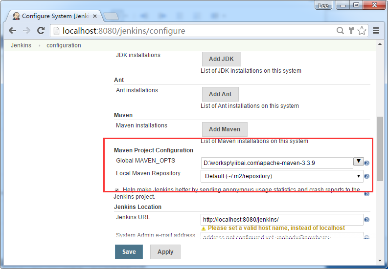 在配置系統(tǒng)屏幕上滾動,直至看到 Maven 部分,然后點擊“Add Maven'按鈕。