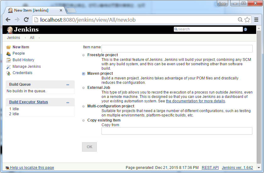 現(xiàn)在,可以創(chuàng)建一個‘Maven project’選項的作業(yè)。在Jenkins儀表盤,單擊新建項目選項。