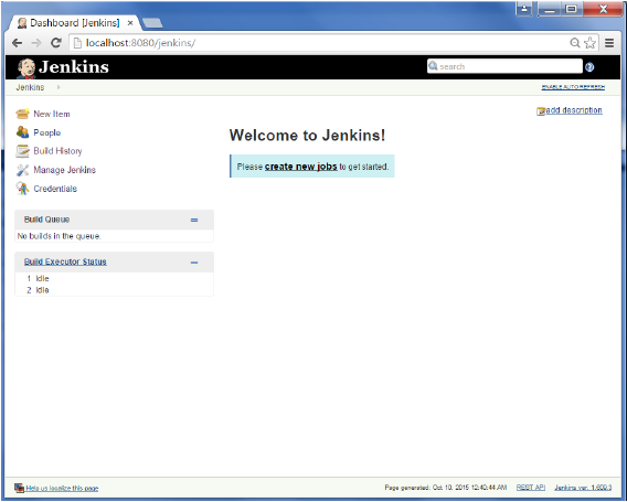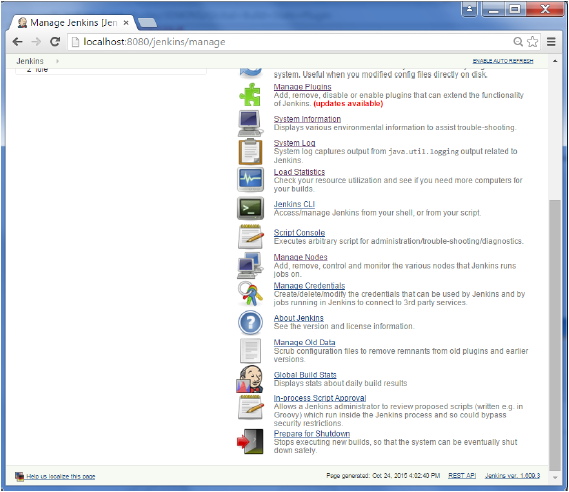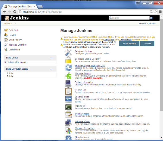 第5步- 轉(zhuǎn)到Jenkins 儀表板,然后單擊管理Jenkins。在管理Jenkins屏幕,向下滾動,現(xiàn)在,你現(xiàn)在會看到一個名為“Global Build Stats”的選項。點擊這個鏈接。