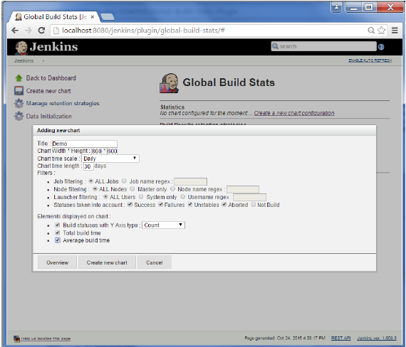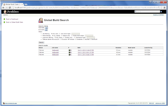 要在Jenkins中看到總體趨勢,也有可從內(nèi)部構(gòu)建和Jenkins插件搜集資料,并以圖形格式顯示它們。這里的插件的一個實例是“Hudson global-build-stats plugin'。所以,讓我們將一步步演示。