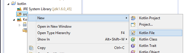 現(xiàn)在可以在src文件夾下創(chuàng)建一個(gè)新的Kotlin文件。