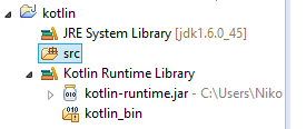 創(chuàng)建一個(gè)名稱為:kotlin的空項(xiàng)目,可以編寫針對JVM的Kotlin代碼(JavaScript不支持JavaScript)。 從Eclipse的角度來看,該項(xiàng)目也是一個(gè)Java項(xiàng)目,但是配置有Kotlin性質(zhì),這意味著它具有Kotlin Builder和Kotlin運(yùn)行庫參考。這個(gè)解決方案的好處是,如果需要,我們可以繼續(xù)向項(xiàng)目添加Java類,混合和匹配Kotlin和Java代碼。