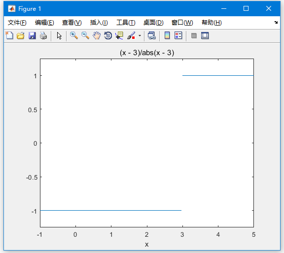 Trial>> f = (x - 3)/abs(x-3);