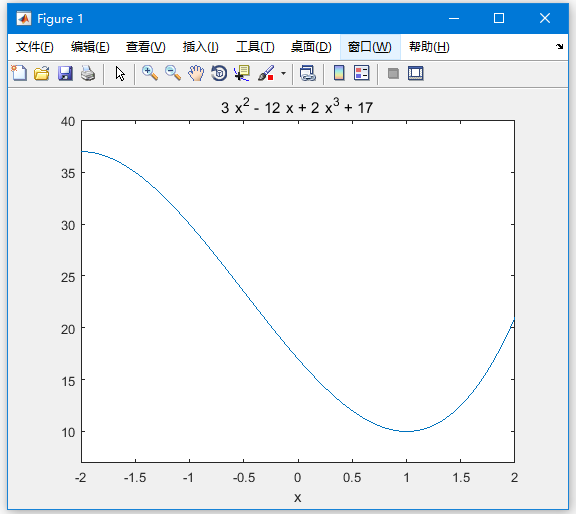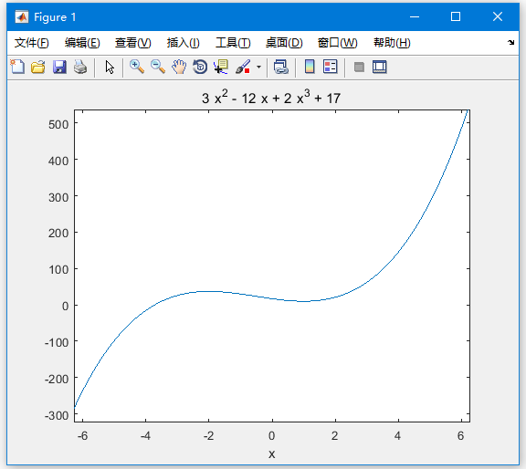 y = 2*x^3 + 3*x^2 - 12*x + 17; % defining the function
