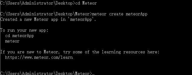 C:\Users\Administrator\Desktop\Meteor>meteor create meteorApp