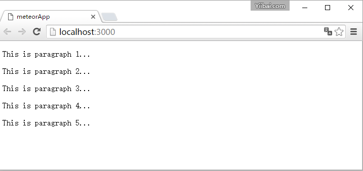 在這個例子中,我們使用的是 {{#each paragraphs}} 遍歷數(shù)組 paragraphs,并返回模板 name = "paragraph" 遍歷每個值 。