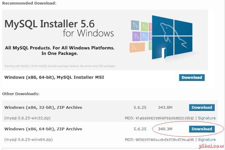 在任何版本的 Windows 默認(rèn)安裝是現(xiàn)在比以前要容易得多,MySQL巧妙地打包安裝程序。只需下載安裝包,隨地把它解壓縮,并運(yùn)行 mysql.exe. 下載地址:http://dev.mysql.com/downloads/ 頁面如下圖所示: