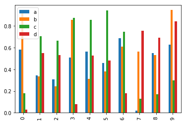 df = pd.DataFrame(np.random.rand(10, 4), columns=['a', 'b', 'c', 'd'])
