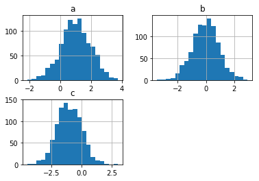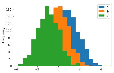 df=pd.DataFrame({'a':np.random.randn(1000)+1,'b':np.random.randn(1000),'c':