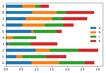 要生成一個堆積條形圖,通過指定:pass stacked=True -