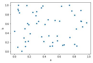 df = pd.DataFrame(np.random.rand(50, 4), columns=['a', 'b', 'c', 'd'])