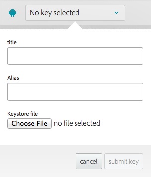 點(diǎn)擊下拉菜單中的選項(xiàng)旁邊的Android圖標(biāo),上面寫(xiě)著未選擇鍵,點(diǎn)擊添加鍵,出現(xiàn)以下畫(huà)面: