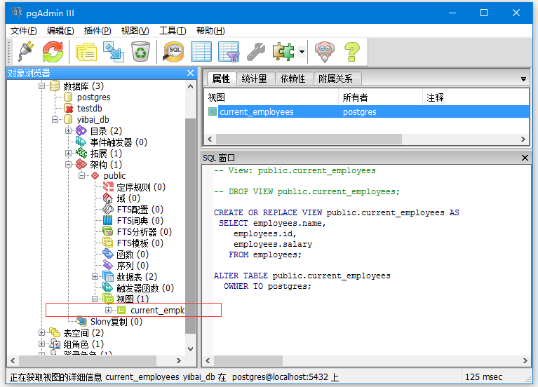 current_employees”并右鍵點(diǎn)擊。視圖是永久刪除的。所以一但刪除了以后,在數(shù)據(jù)庫中就不會(huì)存在了。