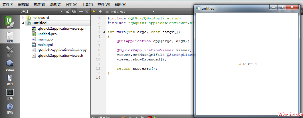 要查看所創(chuàng)建文件名作為第一個參數(shù)運行qmlscene工具(位于bin目錄中)。例如,若要從安裝位置,請鍵入運行提供完成helloword例如:
