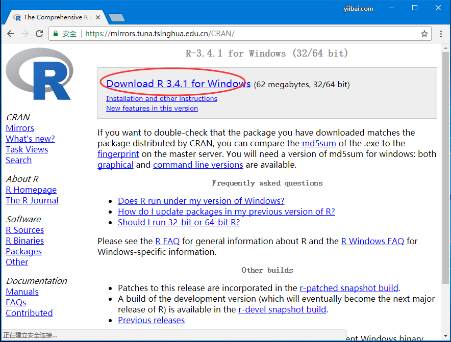 您可以從R-3.4.1 for Windows(32/64位)下載Windows的Windows安裝程序版本,并將其保存在本地目錄中。