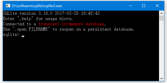 D:/software/sqlite目錄并打開sqlite3命令。它將如下所示:D:\software\sqlite> sqlite3