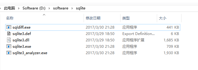 創(chuàng)建一個(gè)文件夾:D:/software/sqlite并放置這些文件。