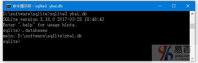 創(chuàng)建一個(gè)名稱(chēng)為“ybai.db”的數(shù)據(jù)庫(kù):