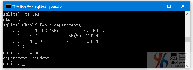 使用SQLite的.tables命令查看表是否已成功創(chuàng)建。
