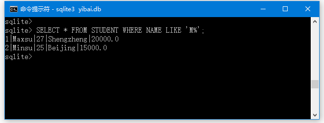 從STUDENT表中選擇查詢名字以’M‘字母開頭的學(xué)生信息記錄。