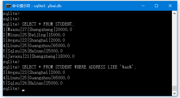 從STUDENT表中查詢地址值具有“an”字符的所有記錄: