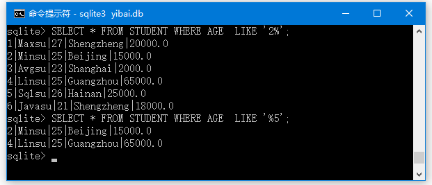 SQLite LIKE運算符用于使用通配符將文本值與模式進行匹配。 在搜索表達式與模式表達式匹配的情況下,LIKE運算符將返回真,即:1。