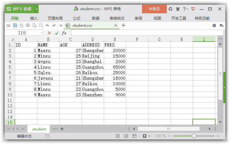 下面來看看一個例子,將STUDENT表的所有內(nèi)容導(dǎo)出為CSV文件: