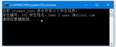 Console.WriteLine("學(xué)生編號:" + sdr["id"] +" 學(xué)生姓名:" + sdr["name"] + " " + sdr["email"]);