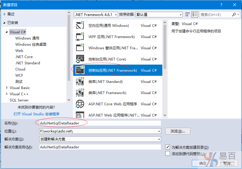 在下面的程序中,使用SqlDataReader從SQL Server獲取數(shù)據(jù)。創(chuàng)建一個C#控制臺應(yīng)用項目:AdoNetSqlDataReader,如下所示 -