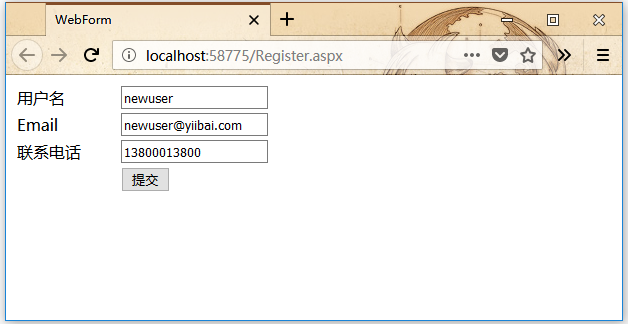 此Web表單包含以下源代碼。文件:Register.aspx -