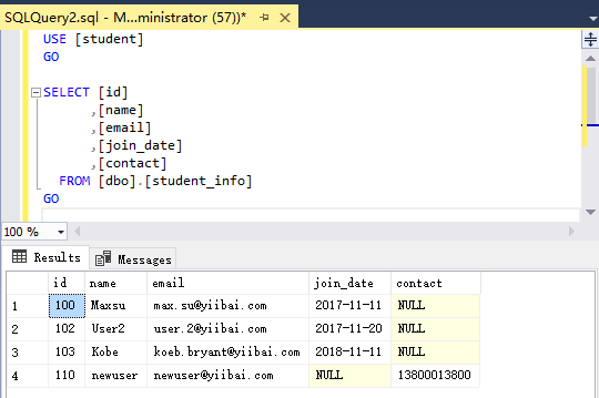 查詢數(shù)據(jù)庫(kù)student的student_info結(jié)果如下 -