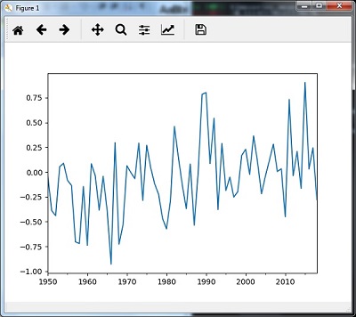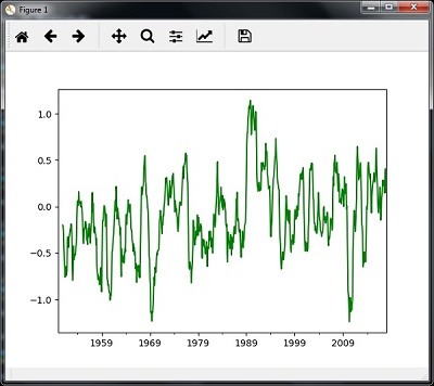 以下示例顯示使用Pandas處理和分割時間序列數(shù)據(jù)。 請注意,這里使用月度北極濤動數(shù)據(jù),可以從monthly.ao.index.b50.current.ascii下載并可以轉(zhuǎn)換為文本格式。