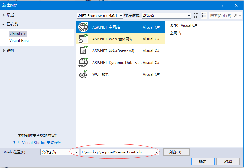 打開Visual Studio創(chuàng)建一個空的網(wǎng)站項目:ServerControls,如下所示 -