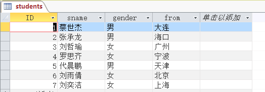 假設Access數(shù)據(jù)庫中的students表有以下數(shù)據(jù) -