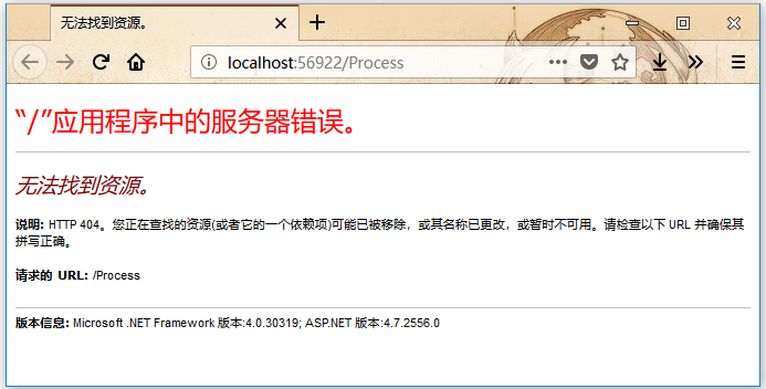 第1步 - 運行它并請求一個流程頁面,使用以下URL :http://localhost:63664/Process,應該會看到以下結果 -