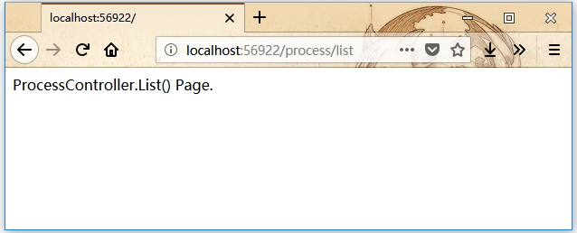 第6步 - 當運行這個應用程序,會看到默認路由的結果。當指定以下URL( http://localhost:56922/Process/List )時,您將看到ProcessController的結果。