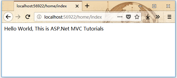 如果將/Home或/Home/Index追加到URL并按下“Enter”按鈕,將看到與MVC應用程序輸出相同的結果。