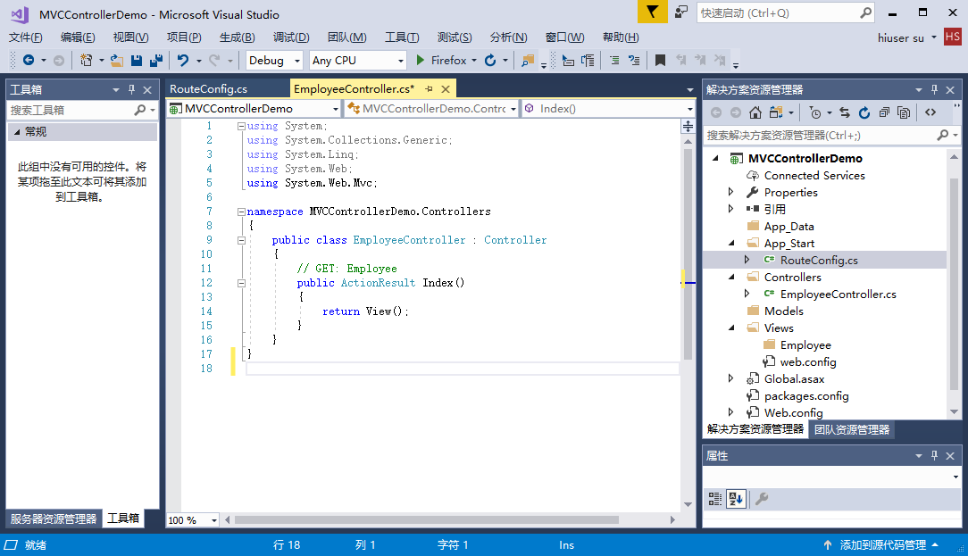 我們來看一個簡單的控制器例子,通過創(chuàng)建一個新的ASP.Net MVC項目。