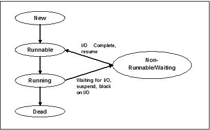為了深入理解線程的功能,我們需要了解線程的生命周期或不同的線程狀態(tài)。 通常,線程可以以五種不同的狀態(tài)存在。 下面顯示了不同的狀態(tài) -