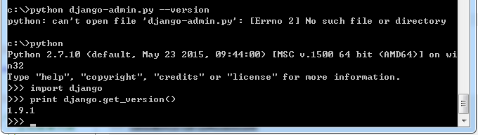 Django是用100%純Python代碼編寫,所以需要在你的系統(tǒng)上安裝Python。最新Django的版本需要Python2.6.5或高于2.6.x分支或2.7.3或高于2.7.x 的分支,本教程中我們使用的是 Python2.7 和 Django-1.9.1。