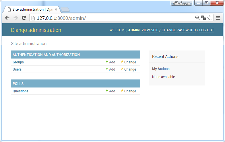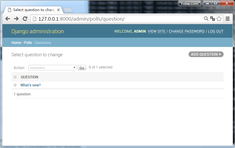 點(diǎn)擊“Questions”。現(xiàn)在,在“change list”頁面查看問題。該頁面顯示數(shù)據(jù)庫中的所有問題,并允許您選擇其中一個(gè)進(jìn)行更改。還有我們先前創(chuàng)建的問題: