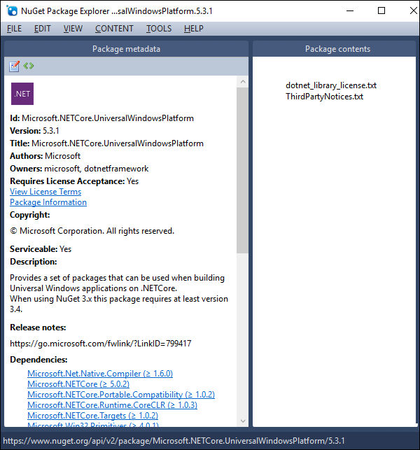 現(xiàn)在一起打開(kāi).NETCore應(yīng)用程序的.NETCore元數(shù)據(jù)包和UWP應(yīng)用程序的元數(shù)據(jù)包。