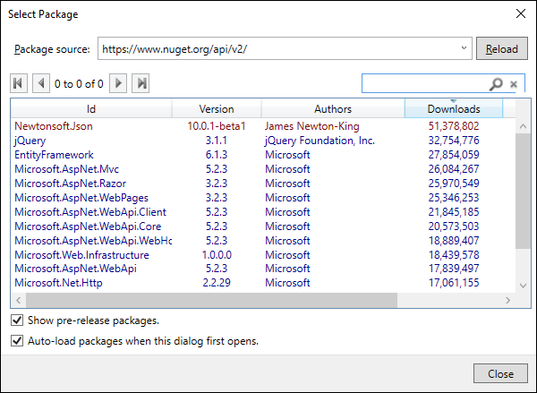 默認(rèn)情況下,它將搜索nuget.org提要。現(xiàn)在在搜索框中搜索Microsoft.NETCore.UniversalWindowsPlatform,您將看到1個(gè)結(jié)果,如下所示。